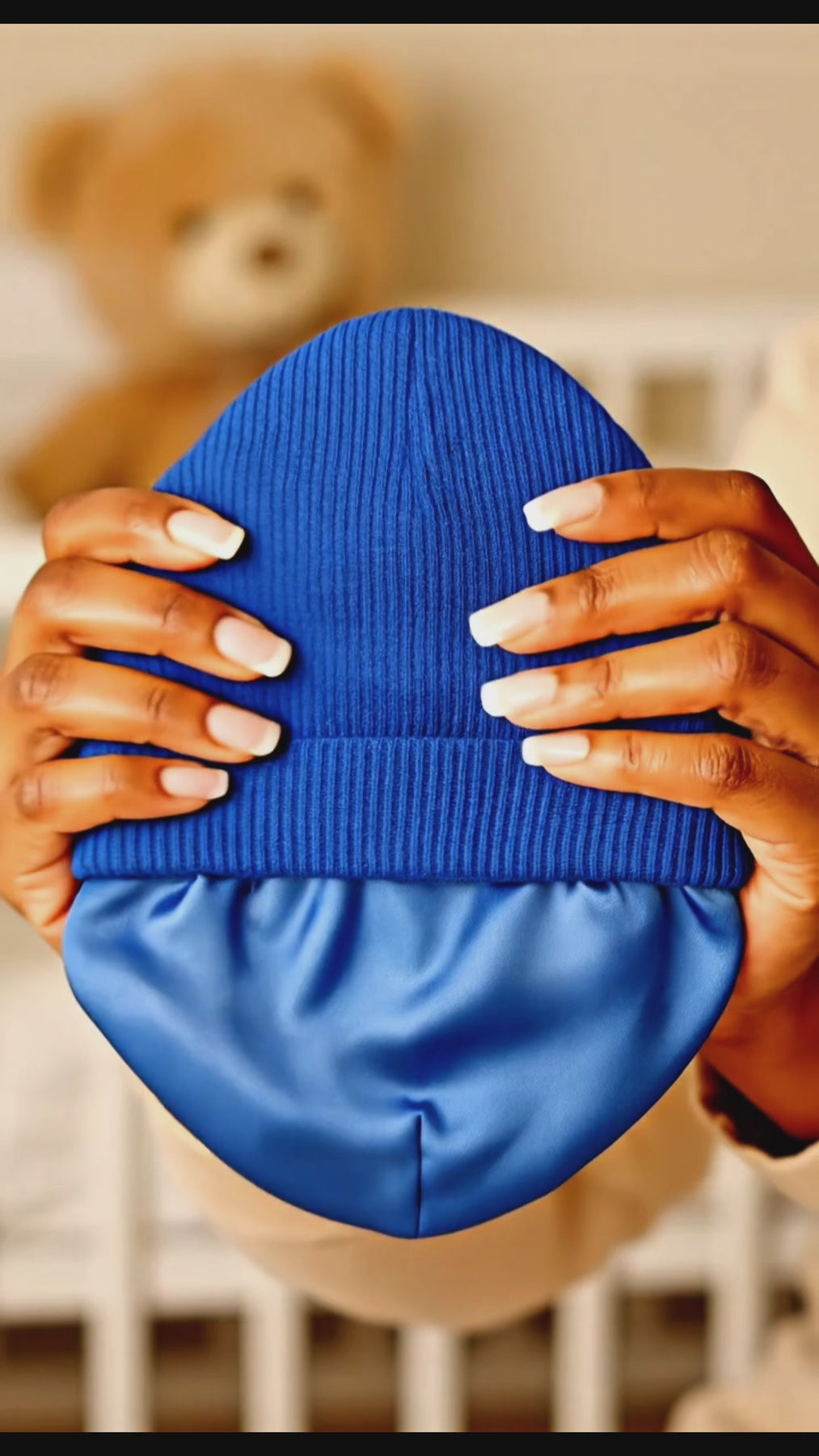Découvrez notre bonnet en satin spécial bébé , conçu pour protéger les cheveux texturés fragile dès la naissance .Notre bonnet est composé d'un exterieur en coton côtelé doux et d'une doublure en satin soyeux et ultra doux , il prévient la chute des cheveux à l'arrière du crâne ,garde les bouclettes hydratées et aide les cheveux à pousser plus fort et plus fournis