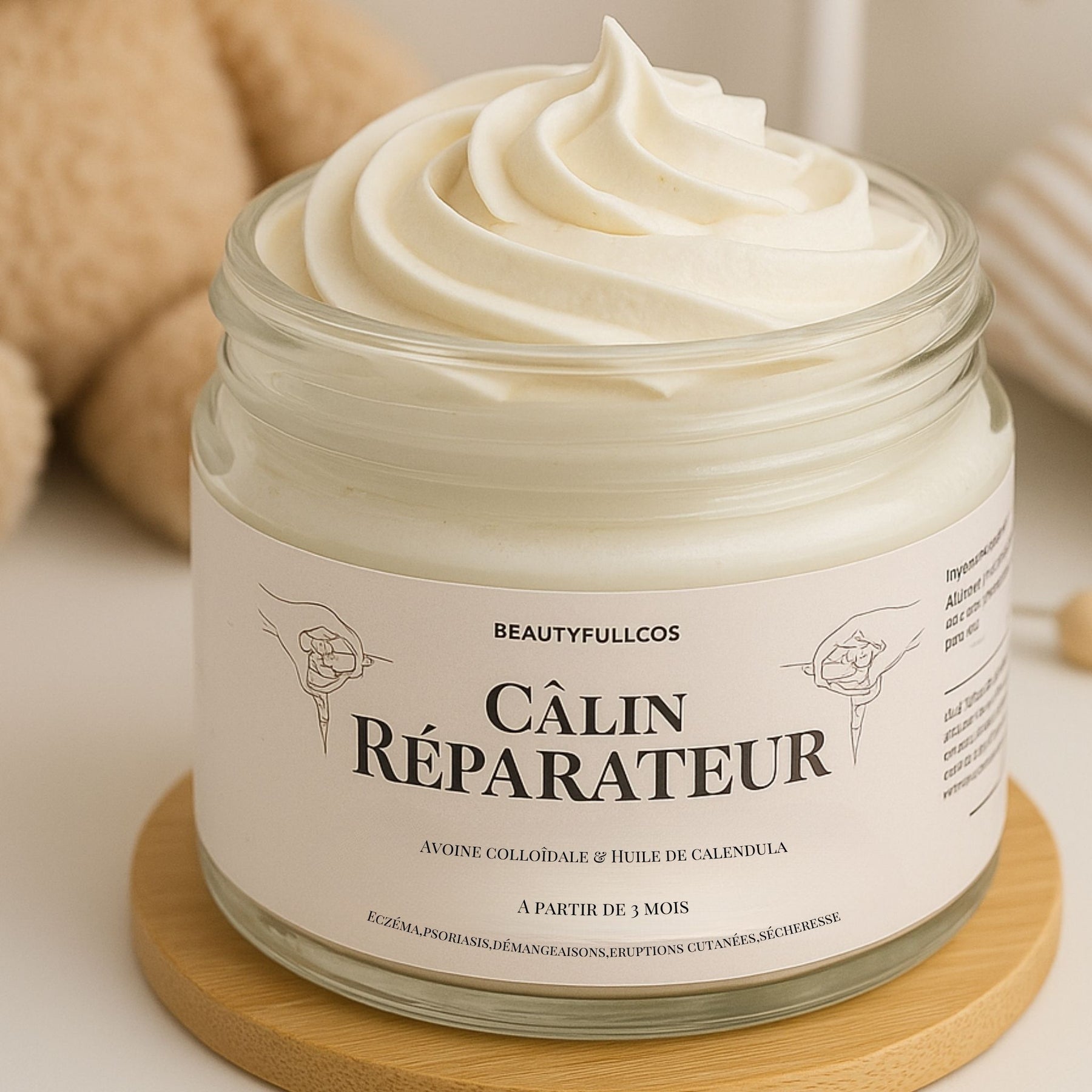 Offrez à la peau fragile de votre bébé un véritable câlin réparateur. Cette chantilly onctueuse 100 % naturelle soulage les rougeurs, l’eczéma, le psoriasis et hydrate en profondeur dès 3 mois. Formulée sans parfum ni allergène, dans un pot en verre recyclable.