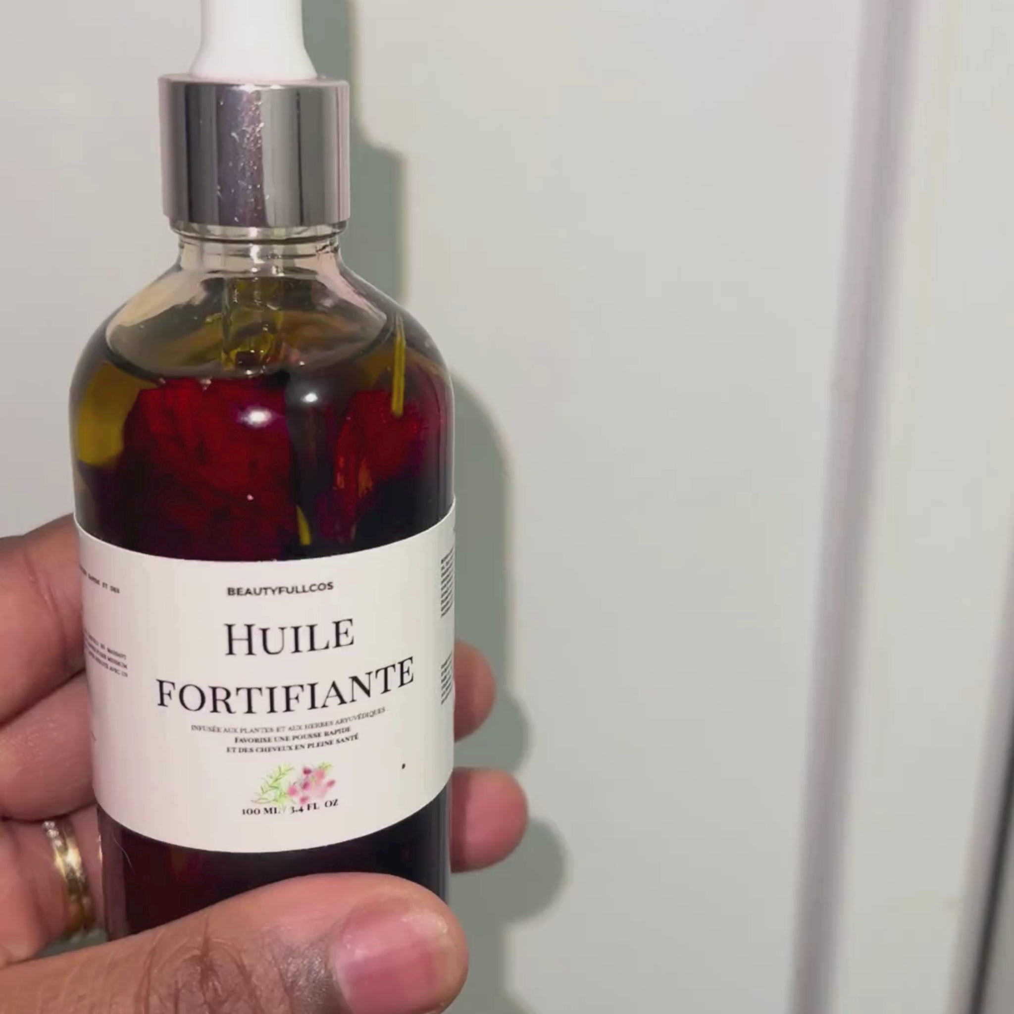 - Macerate of plants (fenugreek, nettle, hibiscus, rosemary, turmeric) in a mixture of rich oils (castor, mustard, olive)
